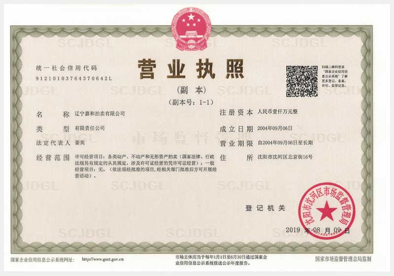 名 稱:遼寧嘉和拍賣有限公司