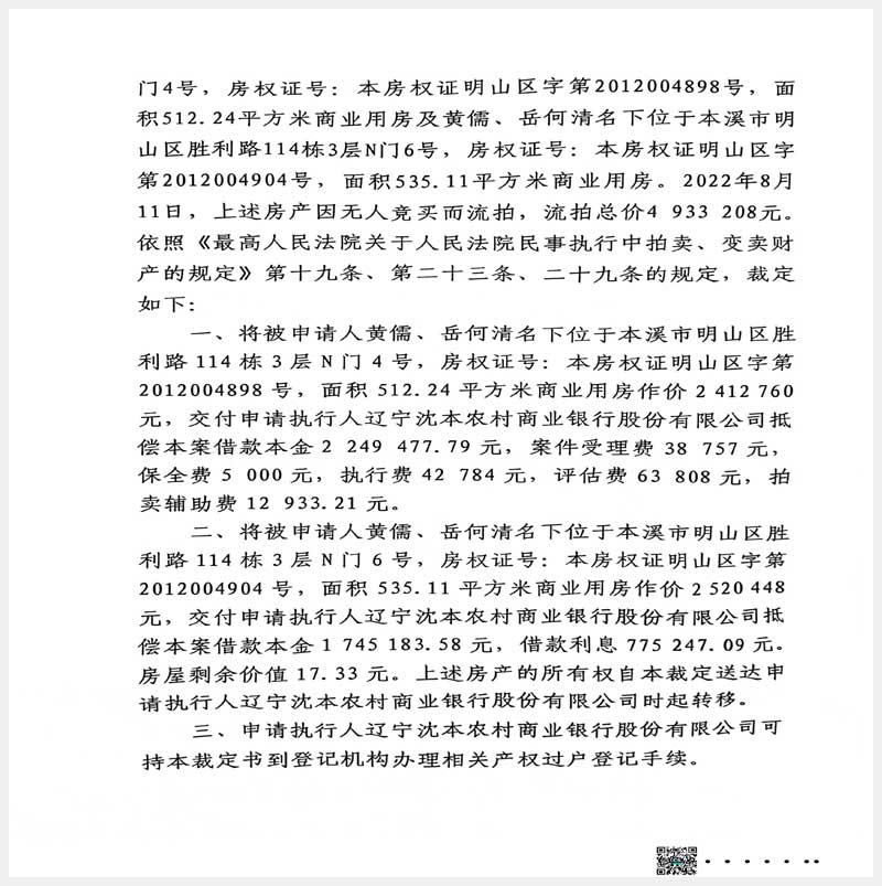 名稱:本溪市明山區(qū)勝利路11棟3層N門4號、6號房產(chǎn) 面積:1047.35㎡ 瀏覽次數(shù):560