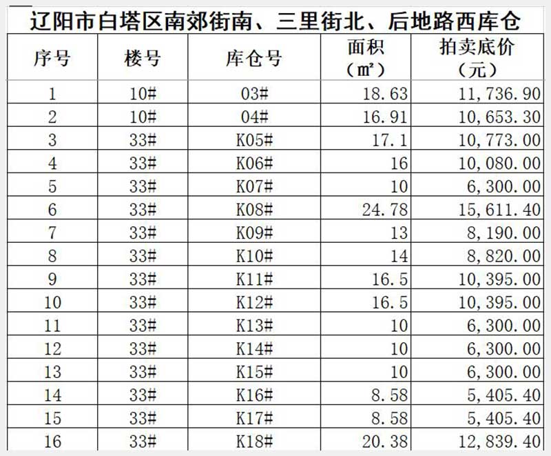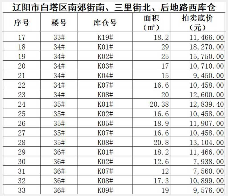 名稱:遼陽市白塔區(qū)南郊街南、三里街北、后地路西(華御世家)庫倉 面積:8.58㎡—29㎡(詳見圖表) 瀏覽次數(shù):122