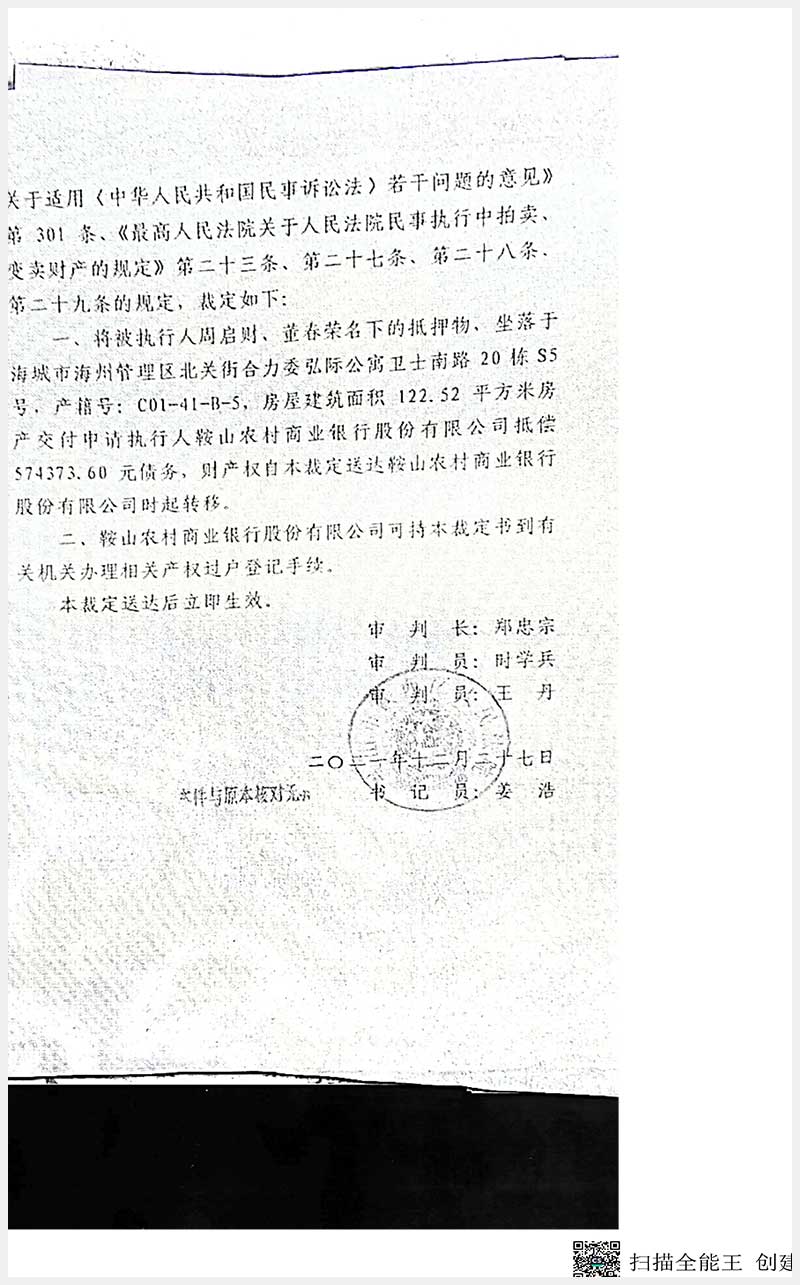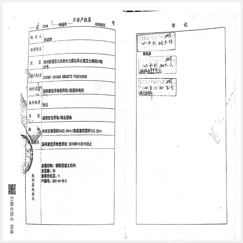 120號 海城市海州管理區(qū)北關(guān)街合力委弘際公寓衛(wèi)士南路20棟S5號房產(chǎn)