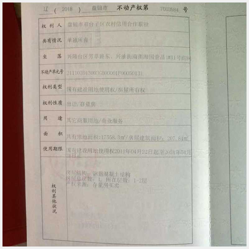 17號(hào) 盤錦渤海地區(qū)海園商網(wǎng)0008棟11號(hào)房產(chǎn)(李陽)