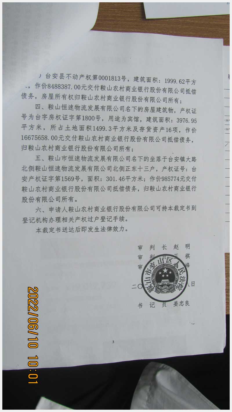 名稱:臺(tái)安鎮(zhèn)臺(tái)大路北側(cè)鞍山恒速物流發(fā)展有限公司北側(cè)正房東十三戶房產(chǎn) 面積:301.46㎡ 瀏覽次數(shù):939