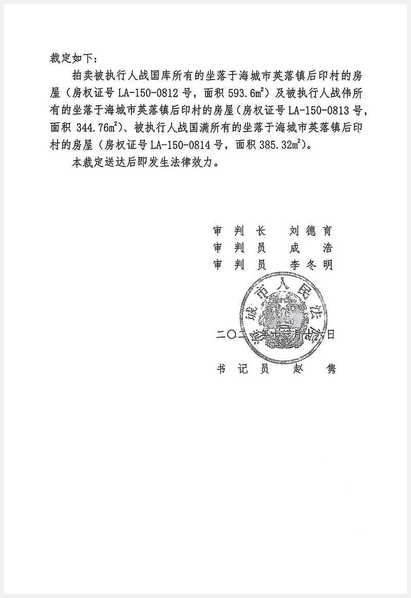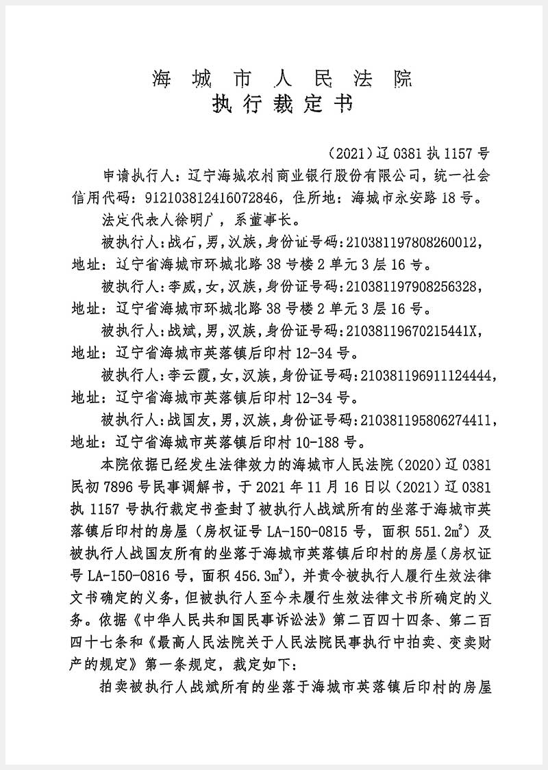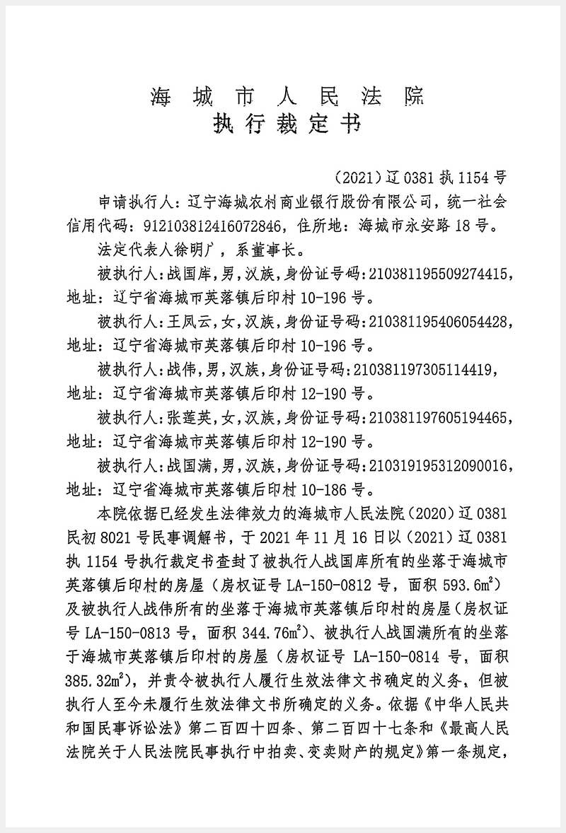 193號 海城市英落鎮(zhèn)后窨村5處房產(chǎn)