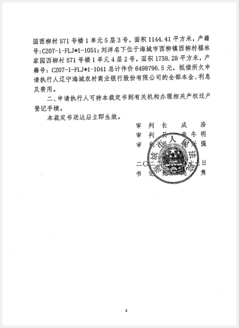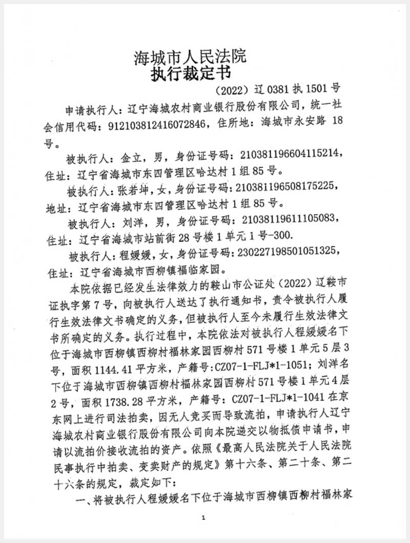 地址:海城市西柳鎮(zhèn)西柳村福臨家園西柳村571號 標的號:213-1