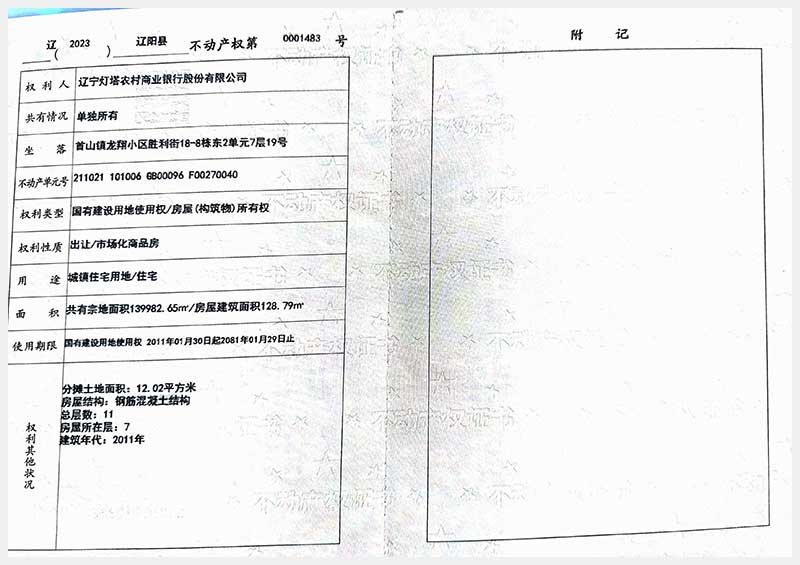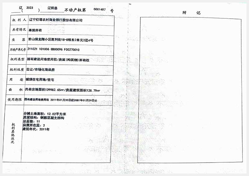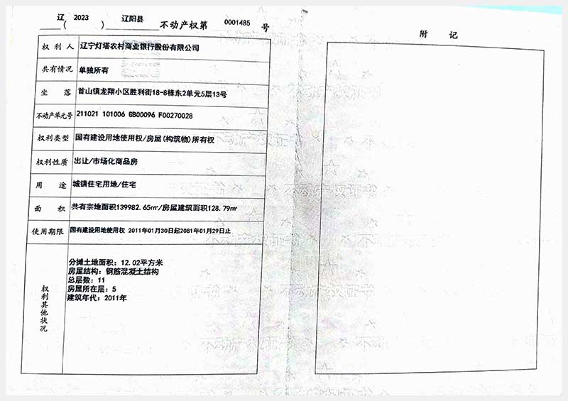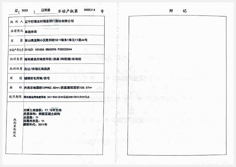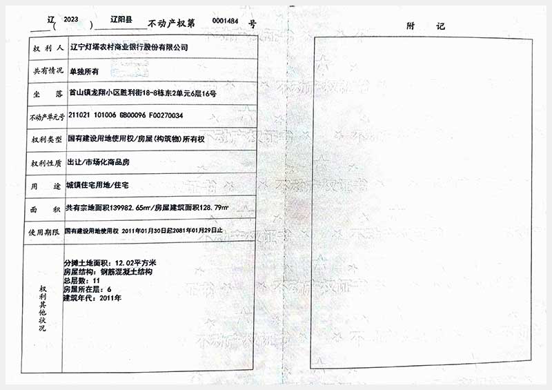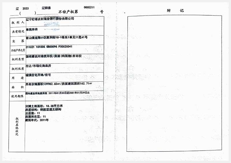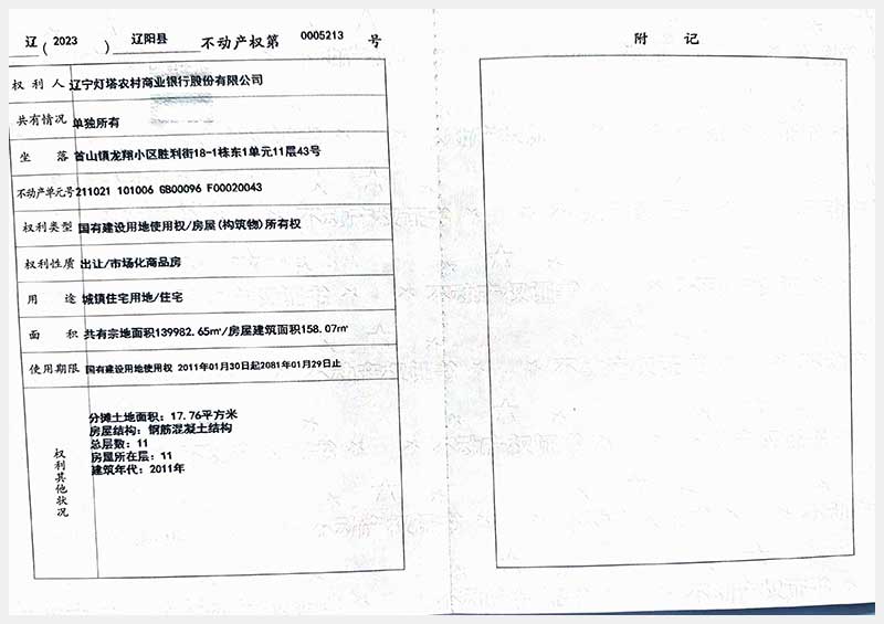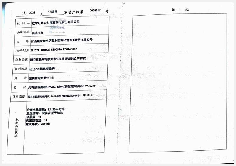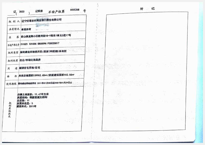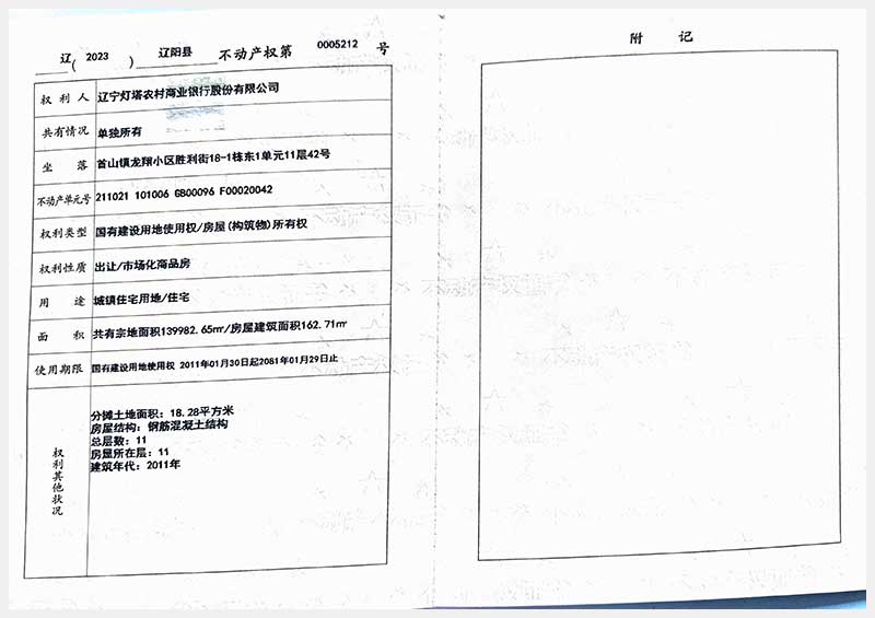 59號(hào) 遼陽(yáng)市首山鎮(zhèn)龍翔小區(qū)勝利街18棟房產(chǎn)