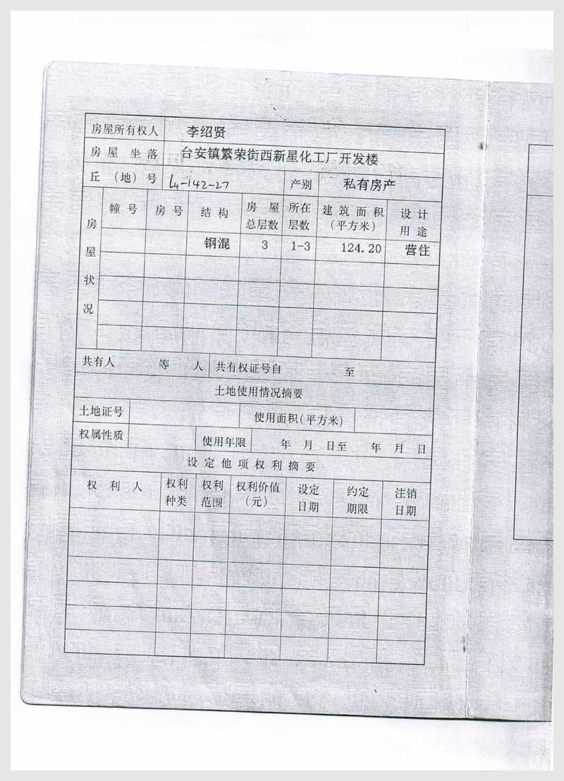名稱: 臺(tái)安鎮(zhèn)繁榮街西新星化工廠開(kāi)發(fā)樓 面積:124.2㎡ 瀏覽次數(shù):3016
