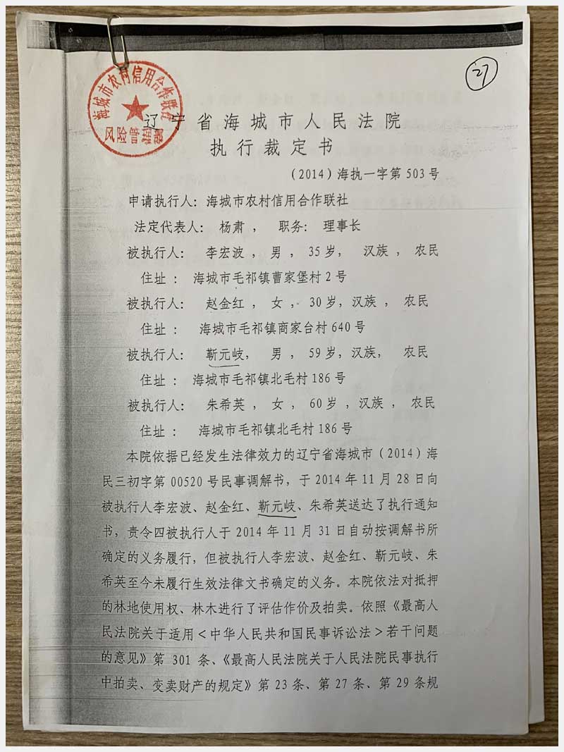 27號(hào) 海城市毛祁鎮(zhèn)南毛村的林權(quán)