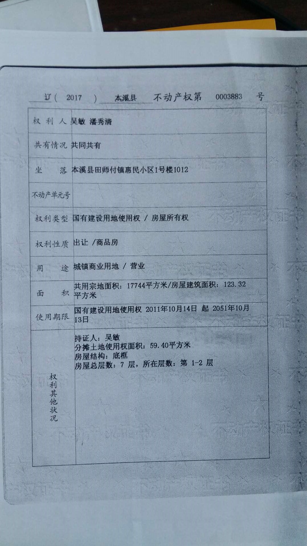 地址:本溪縣田師付鎮(zhèn)惠民小區(qū) 標(biāo)的號(hào):55