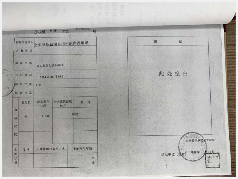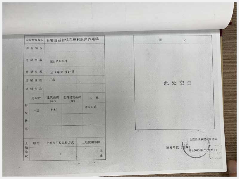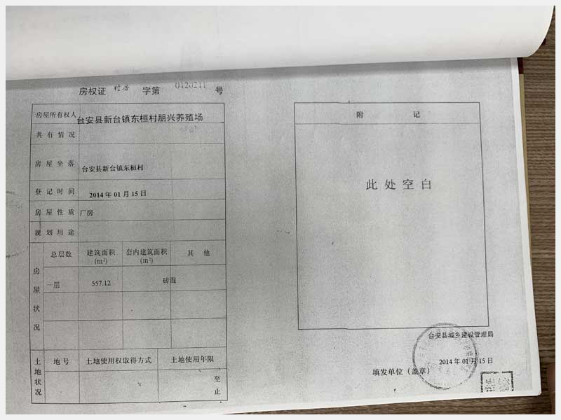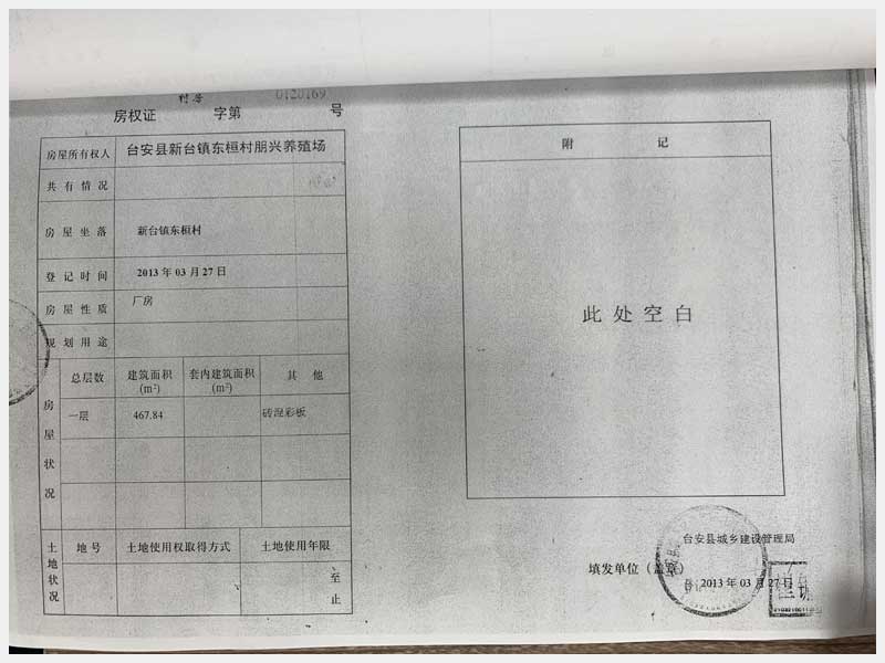 名稱:新臺鎮(zhèn)東桓村朋興養(yǎng)殖場15處房產(chǎn)及土地 面積:房產(chǎn):6009.6㎡、土地:6393.25㎡ 瀏覽次數(shù):1370