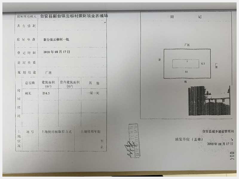 地址:臺(tái)安縣新臺(tái)鎮(zhèn)云柳村 標(biāo)的號(hào):65