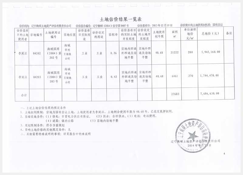 名稱:海城市感王鎮(zhèn)他山村廠房及土地使用權(quán) 面積:房產(chǎn):8458.71㎡、土地:27683㎡ 瀏覽次數(shù):1709