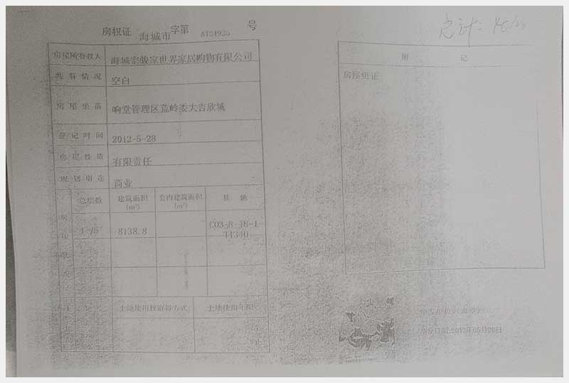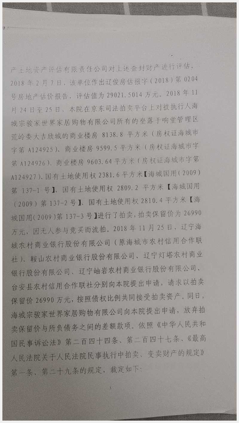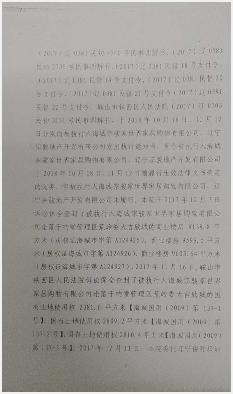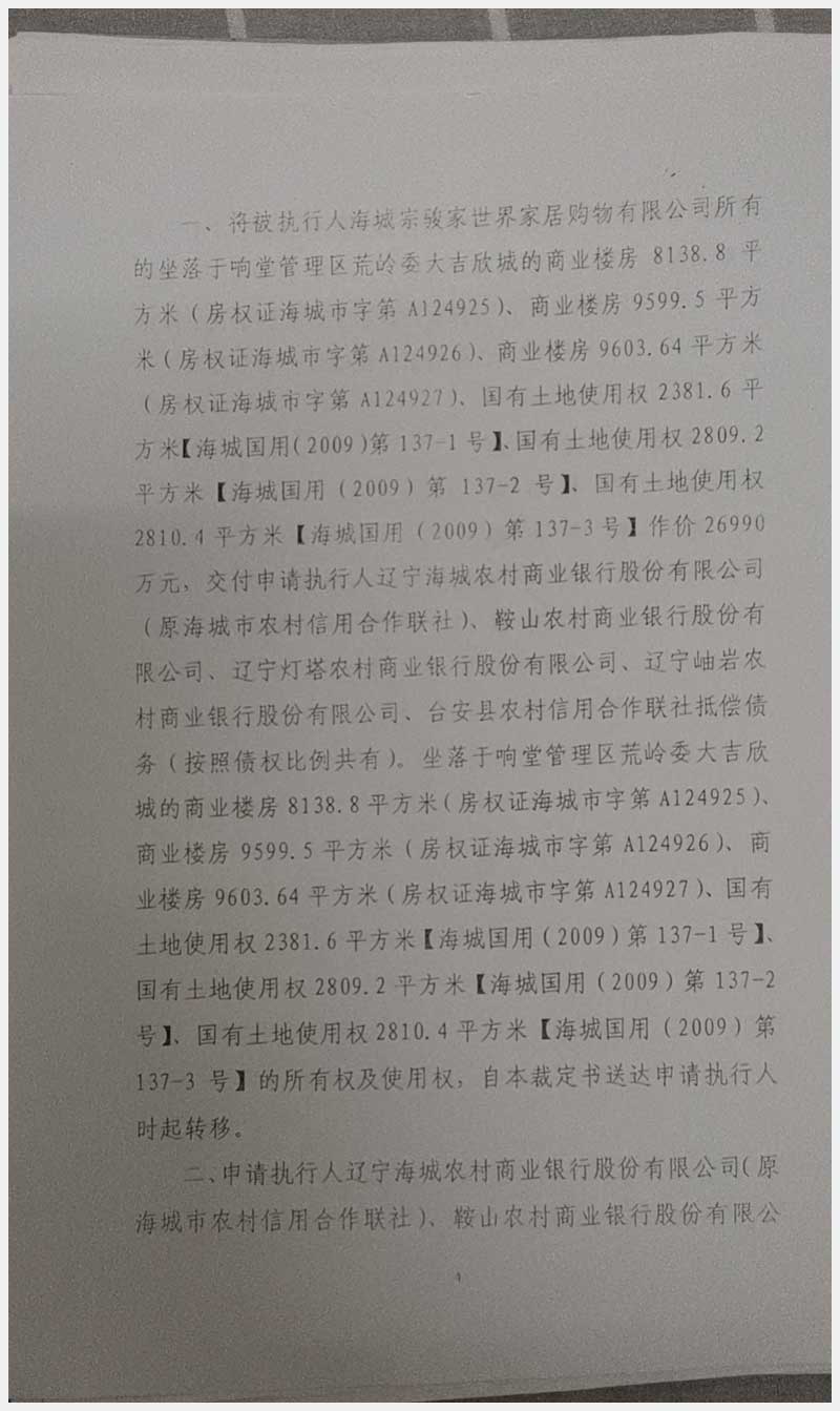 135號 海城宗駿家世界所屬的位于海城市響堂管理區(qū)荒嶺委大吉欣城商業(yè)樓房及國有土地使用權(quán)