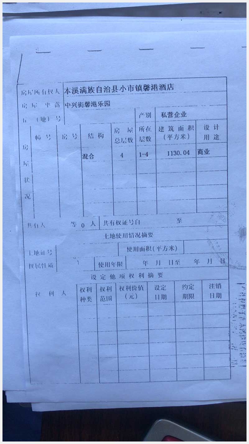名稱:本溪滿族自治縣中興街馨港樂園馨港酒店房產(chǎn)及土地 面積:房產(chǎn):有證:4440.21㎡,無證:672.51㎡;土地:713㎡ 瀏覽次數(shù):1279