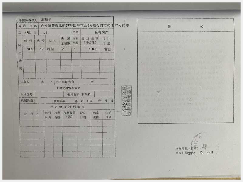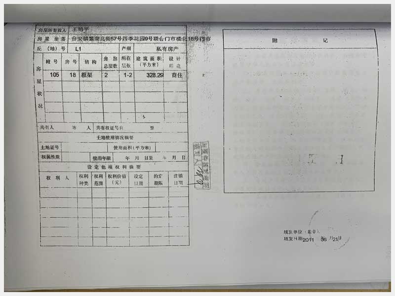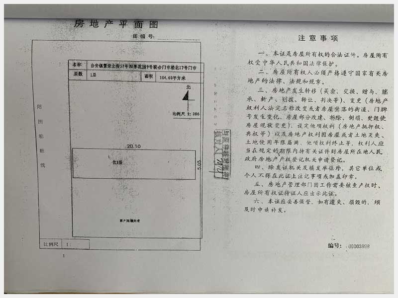 名稱:臺安縣臺安鎮(zhèn)繁榮北街57號四季花園門市樓13、14、15、16、17、18、19、20號 面積:13號:220.85㎡、14號:144.81㎡、15號:57.22㎡、16號:326.01㎡、17號:104.6㎡、18號:328.29㎡、19號:338.24㎡、20號:114.54㎡ 瀏覽次數(shù):1509